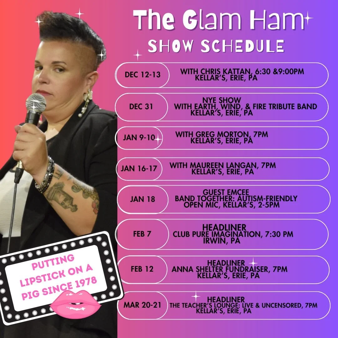 The Glam Ham is a storyteller at heart—blending real life, real chaos, and real emotion into comedy that feels like talking to your funniest friend. With big energy and honest, relatable humor, she brings audiences in and makes them feel instantly connected.